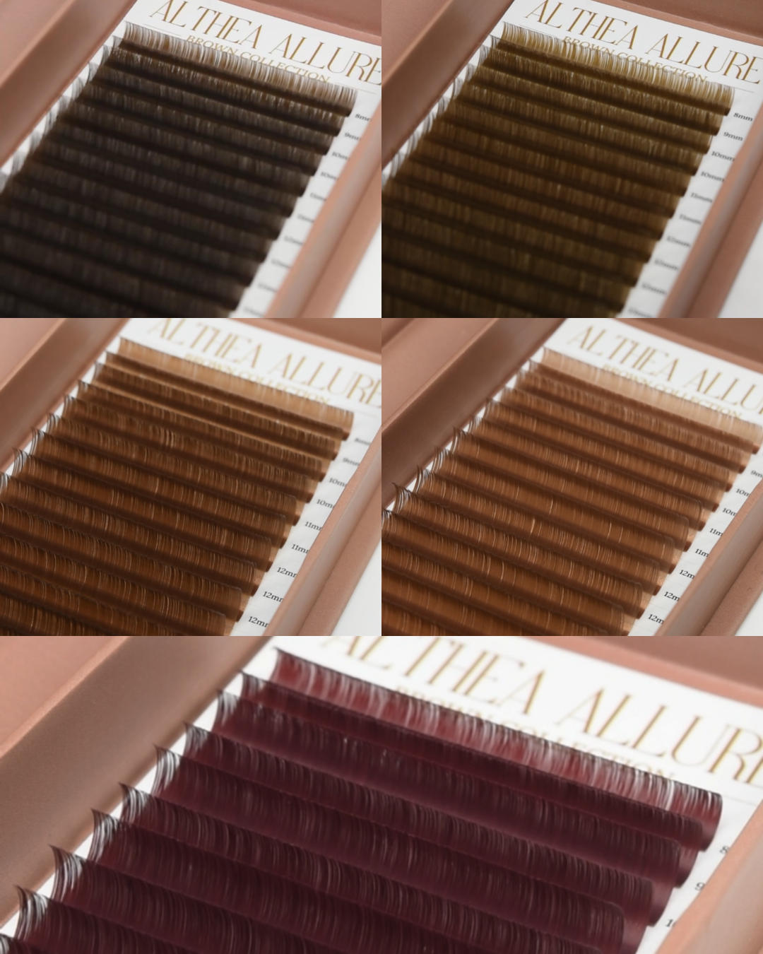 Althea Allure provides a variety of high-quality premium mixed (16 lines) trays in diameters 0.03 and 0.05, curls B, C, CC & D, and lengths as short as 8mm to as long as 20mm! Our Brown Collection trays are made with high-quality Silk Korean PBT fibers.